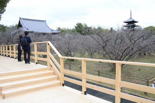 「仁和寺」に「遅咲き桜」鑑賞できるデッキが完成