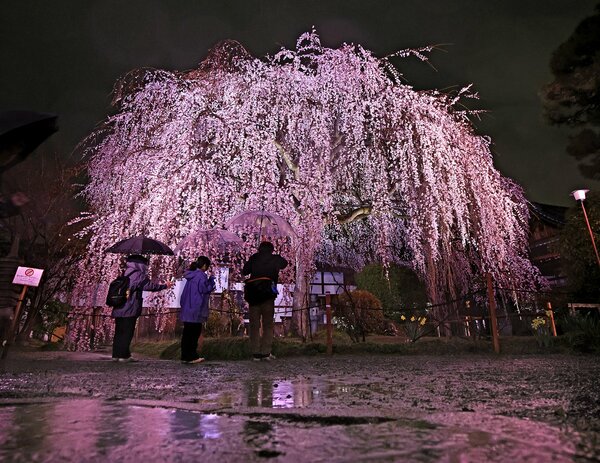 「樹齢100年超」しだれ桜ライトアップ 「植木屋さんが京都で一番美人と」